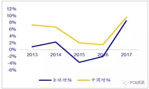 中國(guó) PCB 市場(chǎng)增幅長(zhǎng)期高于全球增幅
