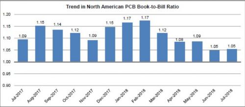 9月4日,美國伊利諾伊州班諾克本 — IPC — 國際電子工業(yè)聯(lián)接協(xié)會? 發(fā)布《2018年7月份北美地區(qū)PCB行業(yè)調(diào)研統(tǒng)計報告》。報告顯示7月份北美PCB訂單量和出貨量繼續(xù)雙雙增長。 訂單出貨比穩(wěn)定在1.05。