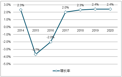 2014-2020年全球PCB產(chǎn)值增長率預(yù)測