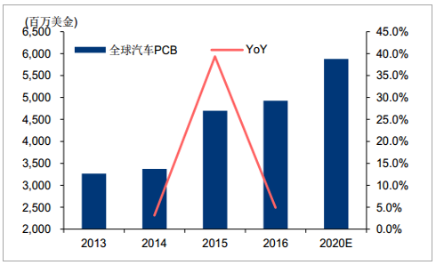2016-2020 年汽車(chē) PCB 行業(yè) CAGR 約為 4.51%