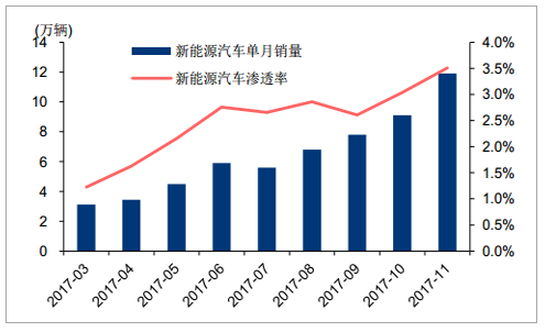 17 年 11 月新能源車(chē)在國(guó)內(nèi)汽車(chē)市場(chǎng)的滲透率已經(jīng)超過(guò) 3.5%